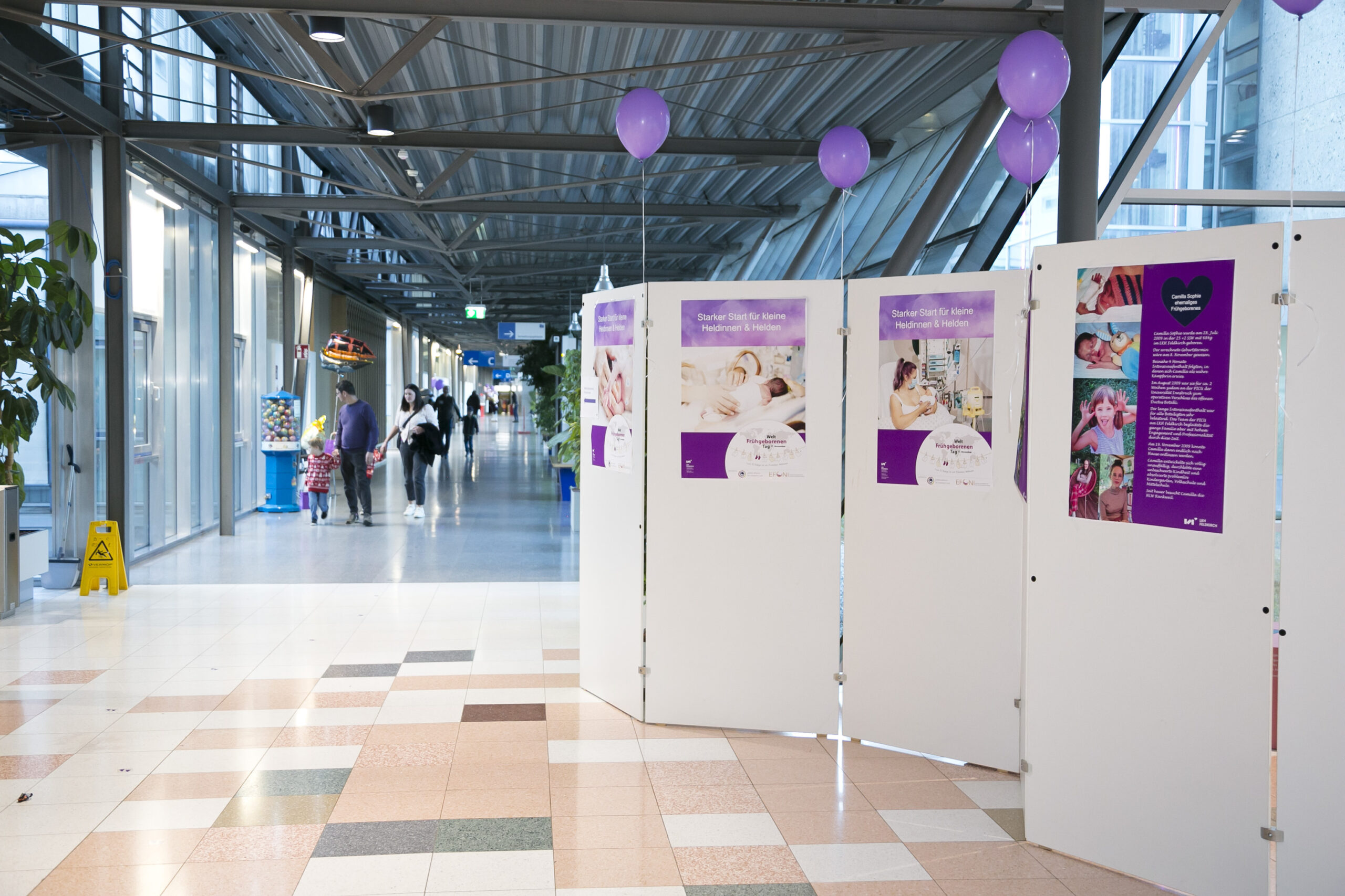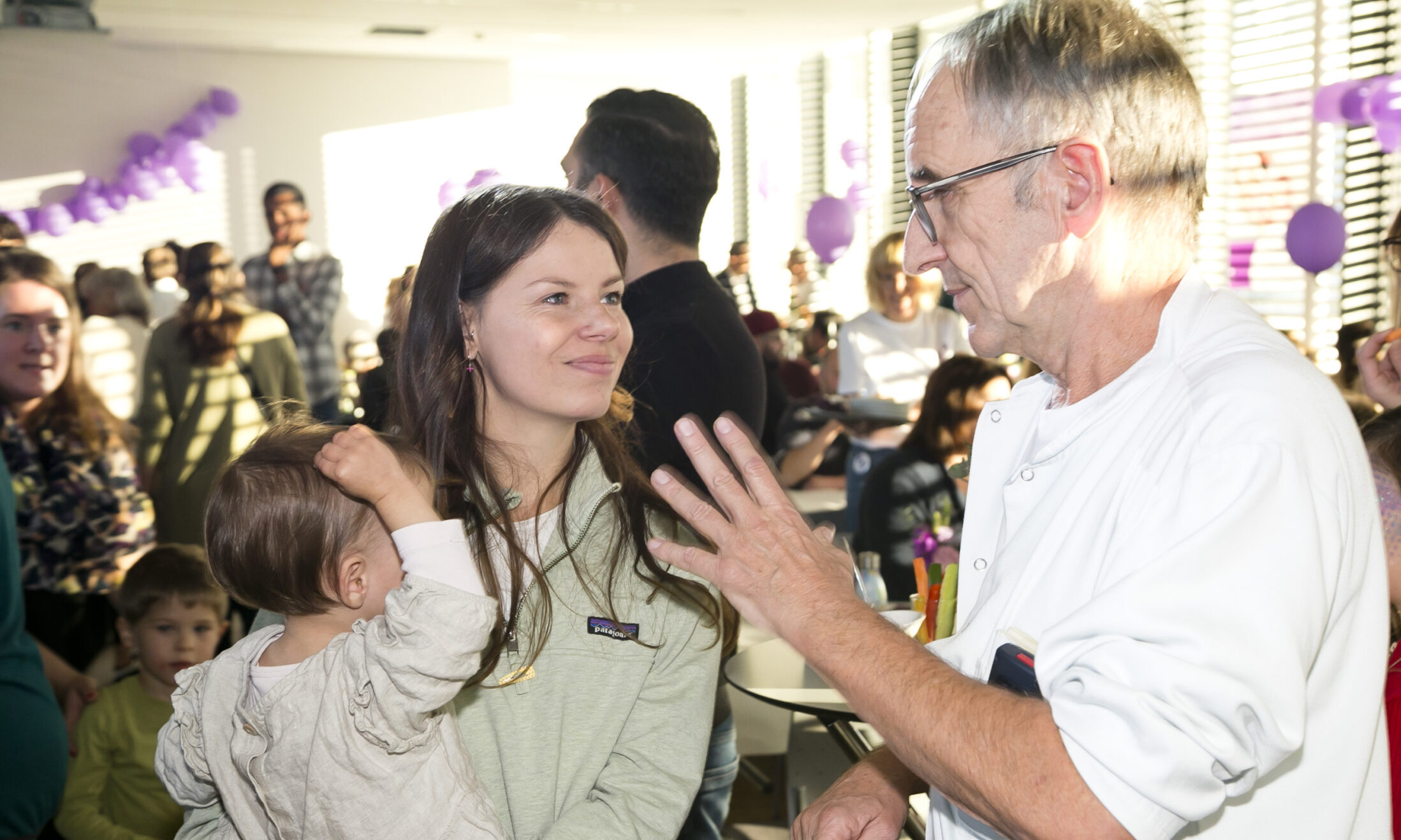 Am 17. November wird weltweit auf die besonderen Bedürfnisse von Frühgeborenen und ihren Familien aufmerksam gemacht. Auch das LKH Feldkirch und das LKH Bregenz setzten im Jahr 2024 wieder ein Zeichen: Beide Häuser wurden in Purpur beleuchtet, der internationalen Farbe des Weltfrühgeborenentags. Am LKH Feldkirch hat das Team der Neonatologie rund 300 Gäste – ehemalige Frühgeborene bis zum Alter von zehn Jahren und ihre Eltern – zu einem stimmungsvollen Nachmittag mit CliniClowns, Kinderschminken und vielen berührenden Begegnungen in den Panoramasaal eingeladen.